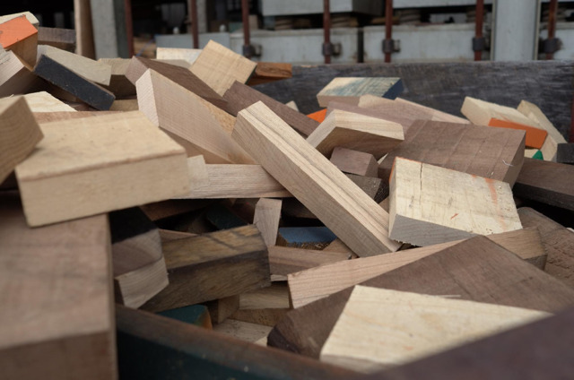 弊社では毎月約15トンほど木材の端材が出ます。製品を作り、木を加工すると、端材はどうしても出ます。また腐敗部分は安全面から見ても使用できず、カットせざるを得ません。